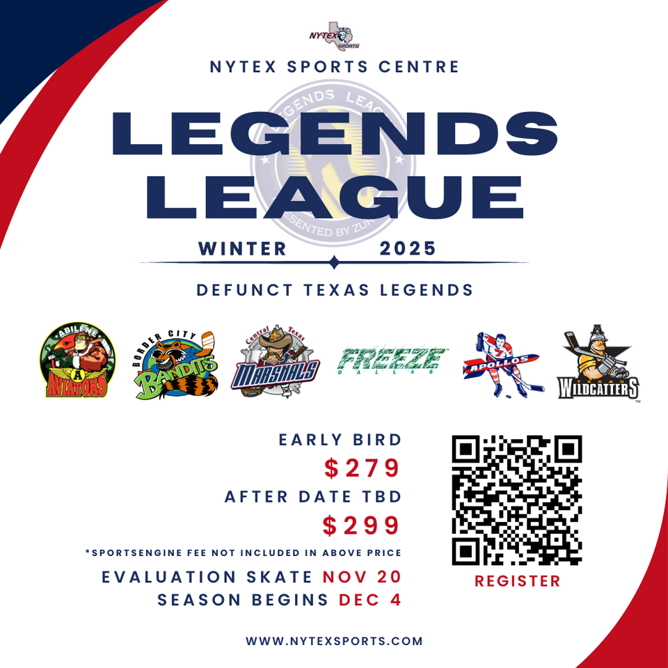 Defunct Texas Legends include the Abilene Aviators, Border City Bandits, Central Texas Marshals, Dallas Freeze, Houston Apollos and Texas Wildcatters.